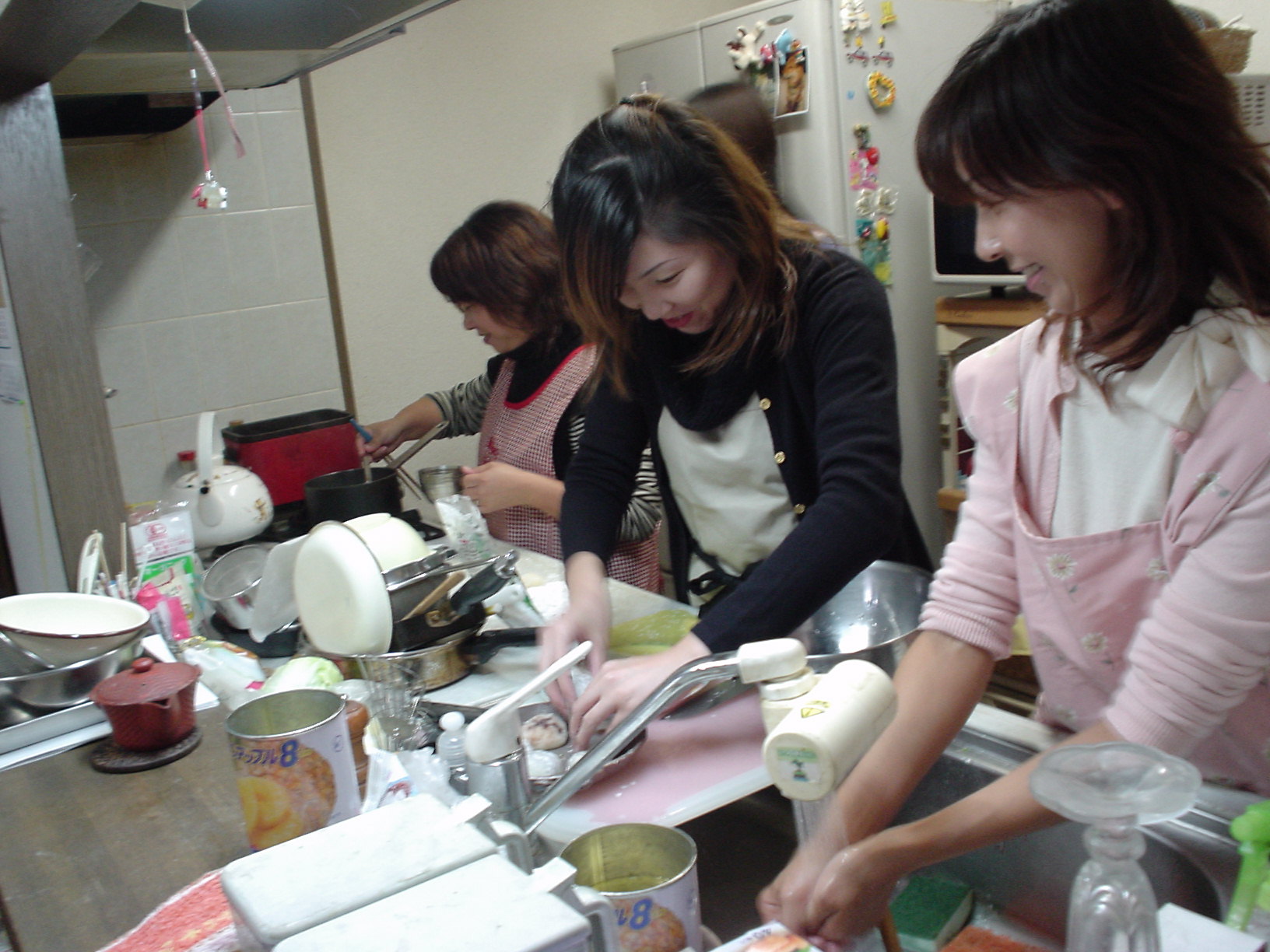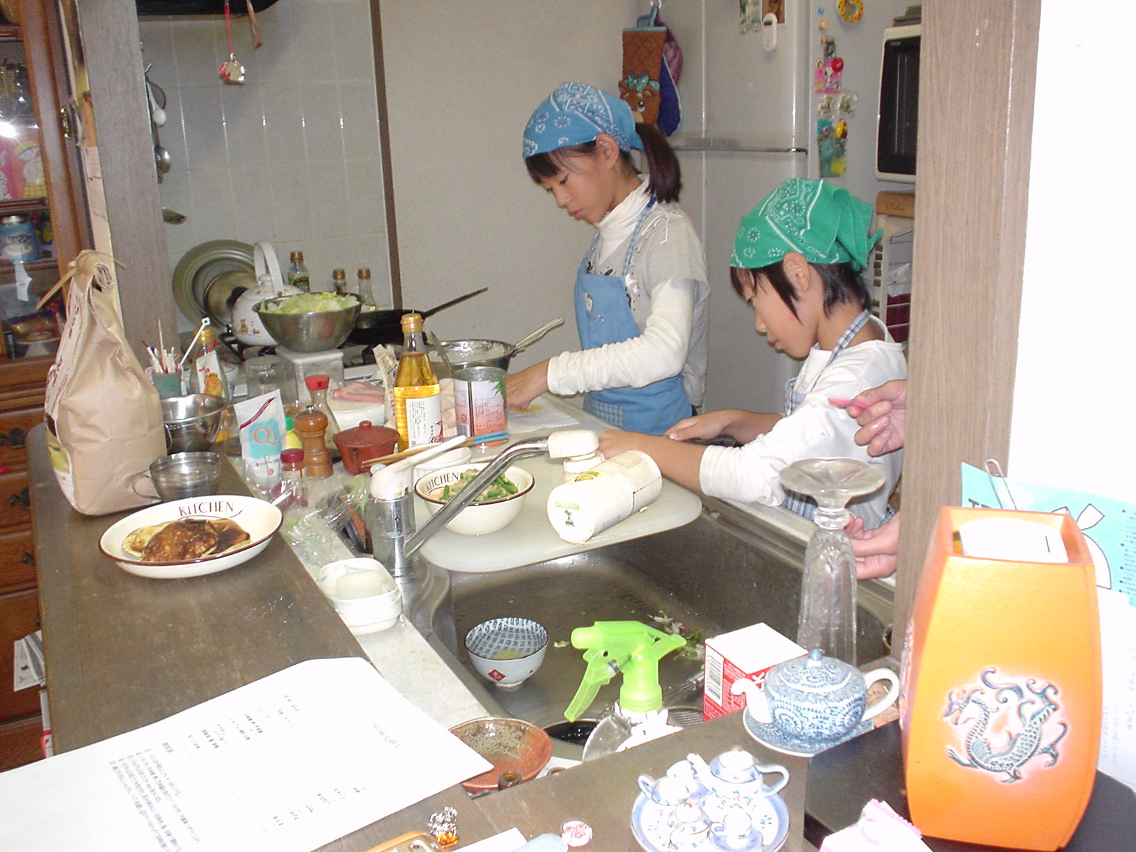 親子での参加もありました。また、姉妹で、お友達同士でなどの参加もあり、和気あいあいとした雰囲気で料理が学べます。 |