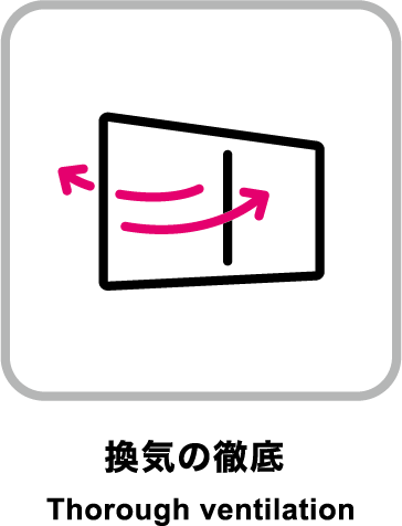 1時間に1回換気とともに、換気扇での換気を随時行っております。
